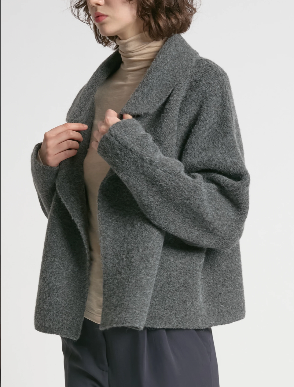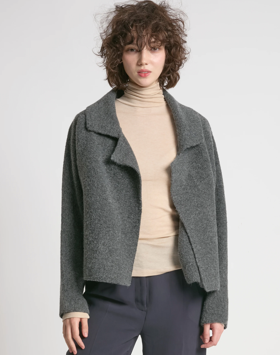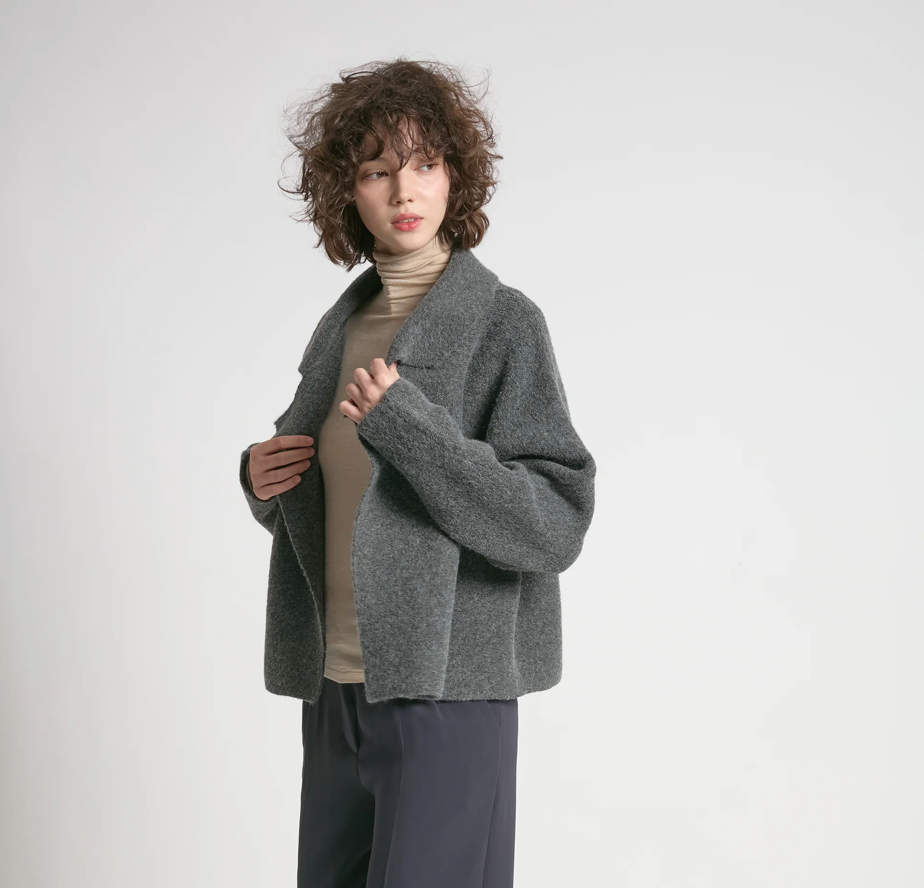 A modern essential with timeless ease, this Flap Collar Crop Cardigan is defined by its waffle knit texture and sculptural flap collar detail. The cropped length creates a flattering, structured silhouette, while the open front style makes it the perfect layering piece for effortless, everyday sophistication. Soft to the touch yet tailored in feel — it’s a versatile knit that transitions seamlessly from casual denim to polished trousers.