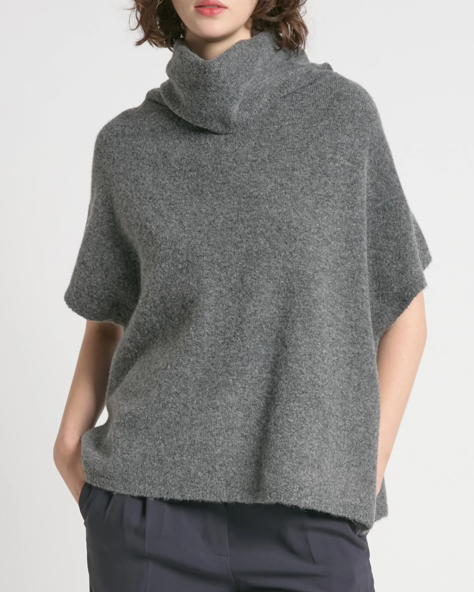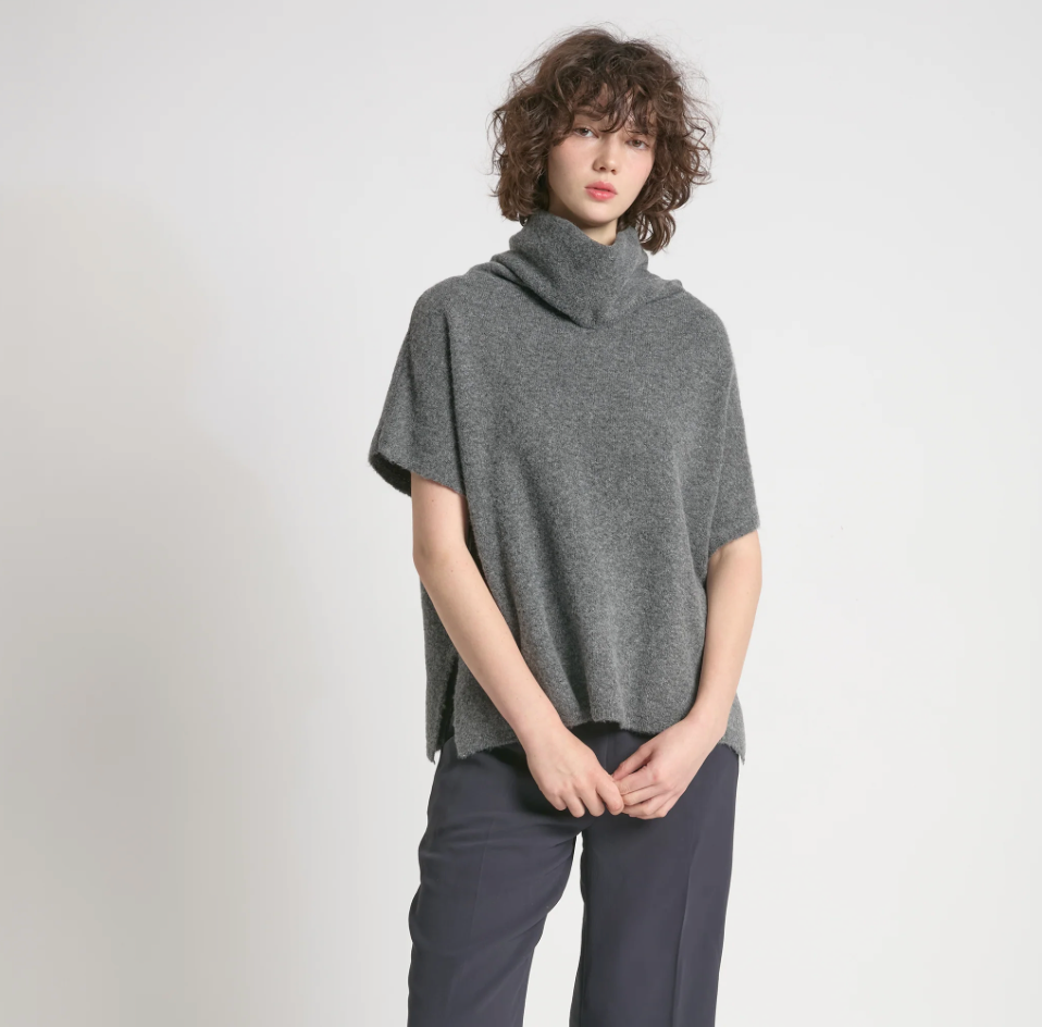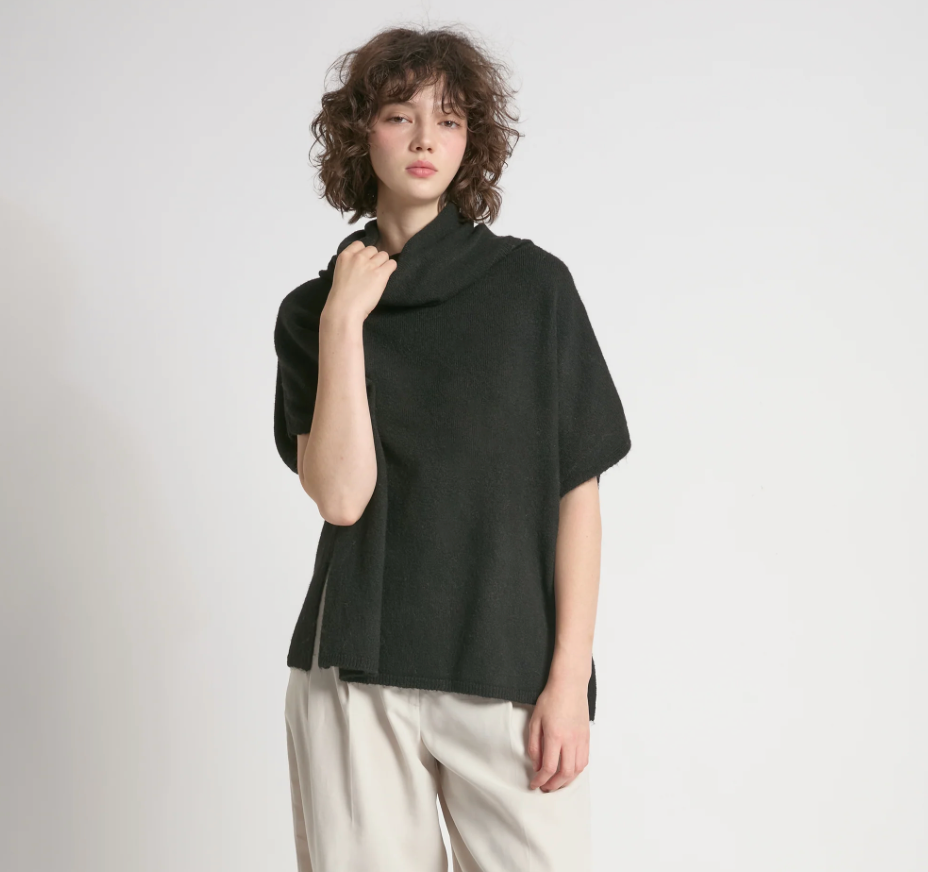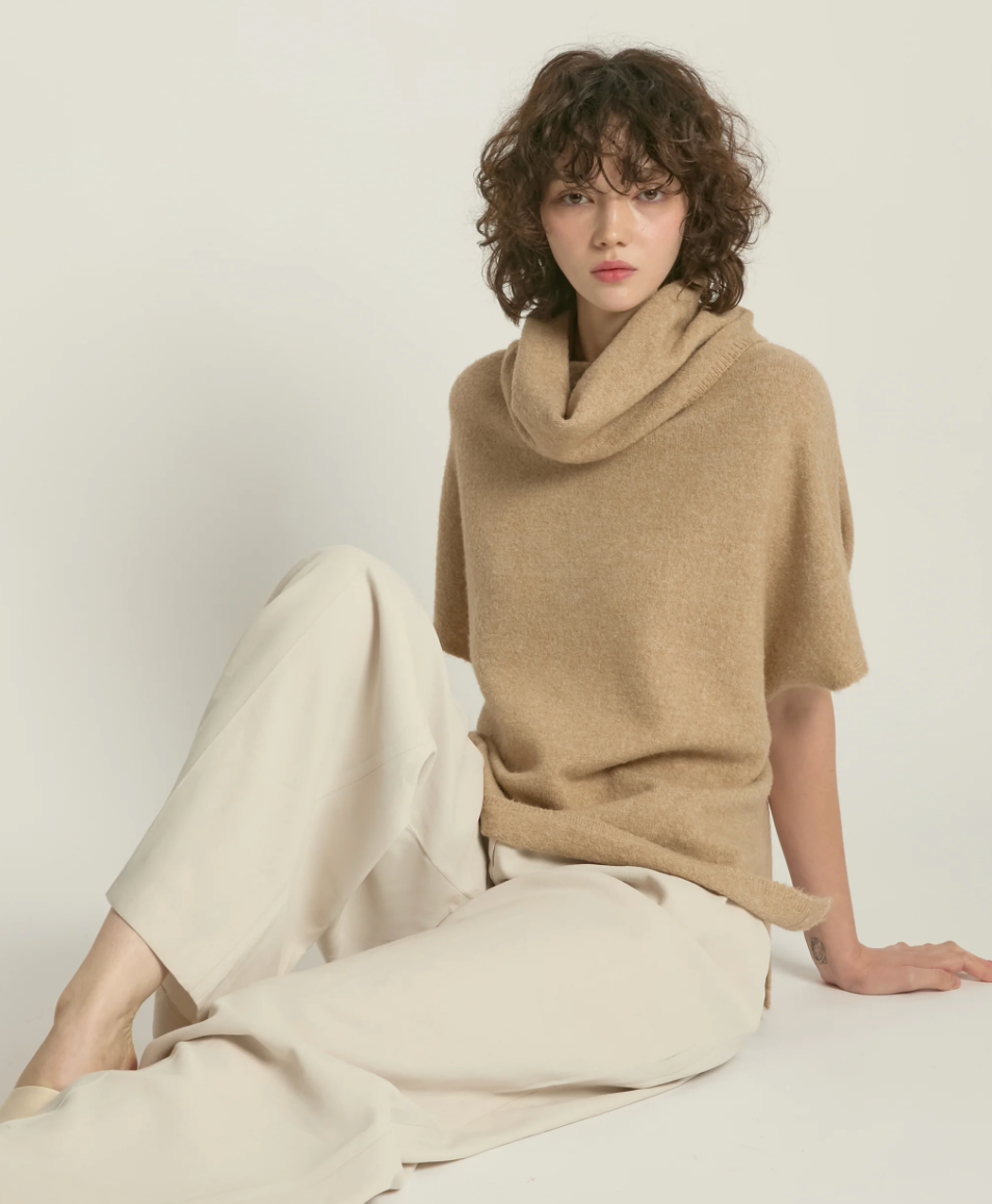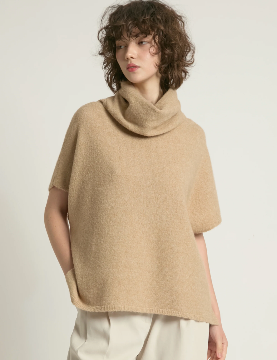A study in effortless elegance, this camel sweater features a relaxed fit and wide cowl neckline that softly frames the face. Dropped shoulders and cap sleeves lend it an easy, draped silhouette that feels both polished and laid-back. The plush knit texture gives it a cozy, elevated feel — perfect for layering through changing seasons or pairing with wide-leg trousers for a minimalist look.