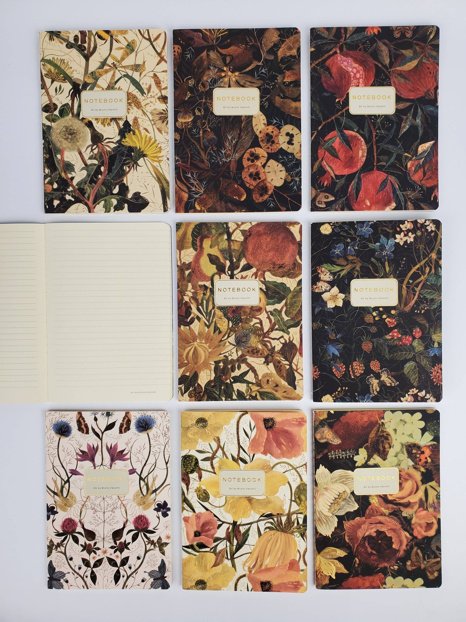 Each notebook features stitched binding that will not crack, paper will not smudge and art featured in inside front and back cover. Inside each notebook includes a place for your name/info and a "notes" page at the end.