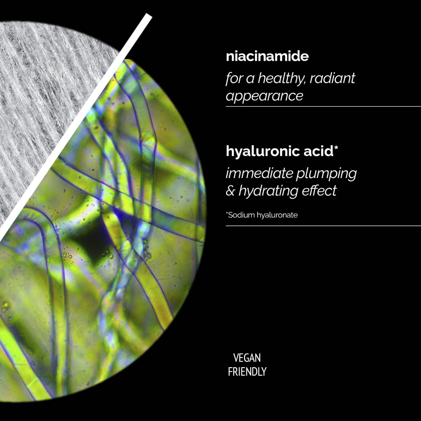 Powered by advanced freeze-dried technology, this mask preserves and concentrates key ingredients for maximum stability and effectiveness. Its high-tech fibers, infused with niacinamide, hyaluronic acid**, panthenol, and botanical extracts, activate only upon contact with water—transforming application into a sensorial ritual that is personal, luxurious, and highly effective.